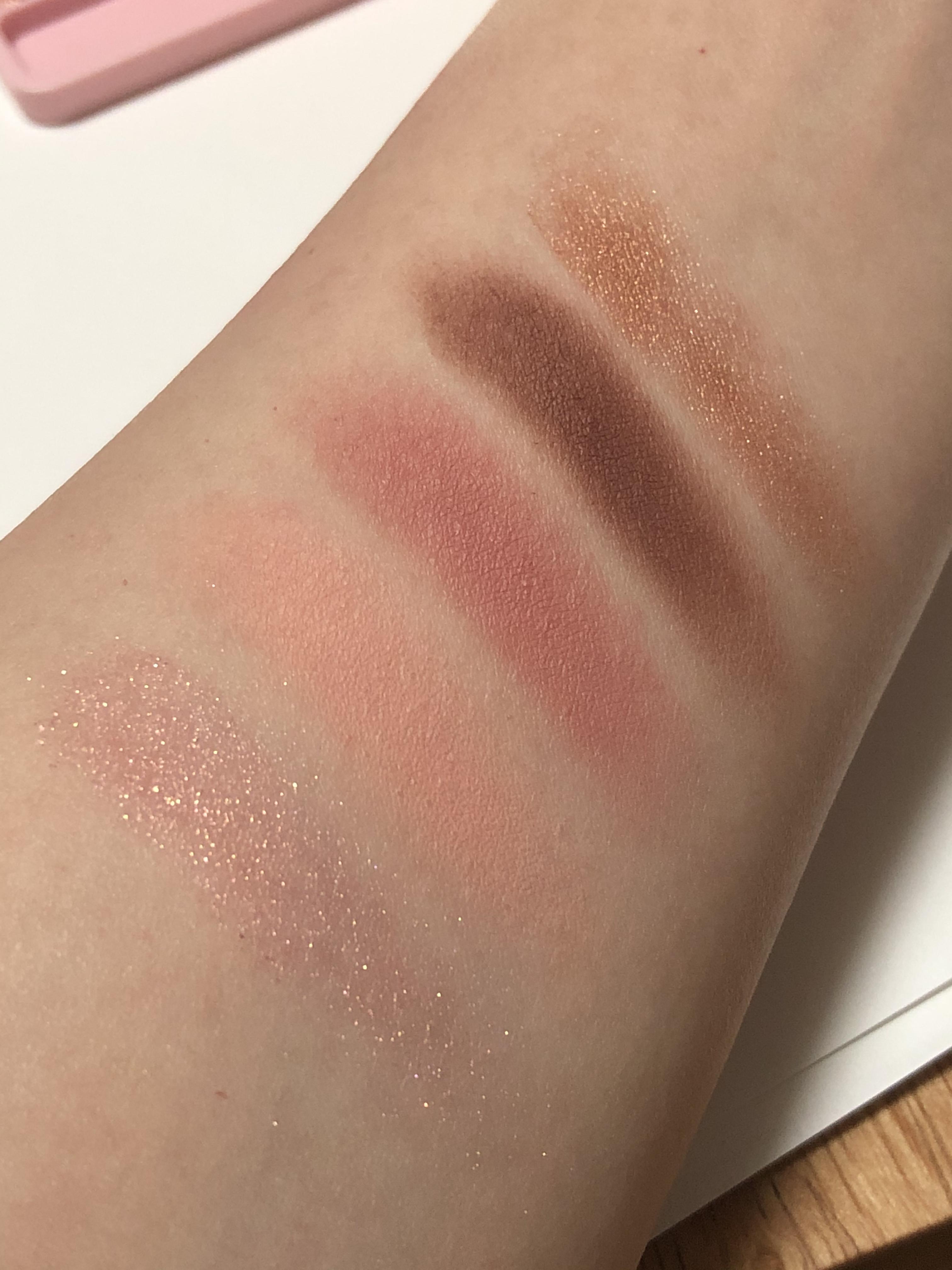 적당히 중간이라 웜쿨 모두 소화 가능합니다. 누구라도 예쁜 색이라서 눈앞머리, 아이홀 전체에 베이스로 쓰지만 않으면 무난하면서 적당히 화려한 골드 핑크 색상입니다.