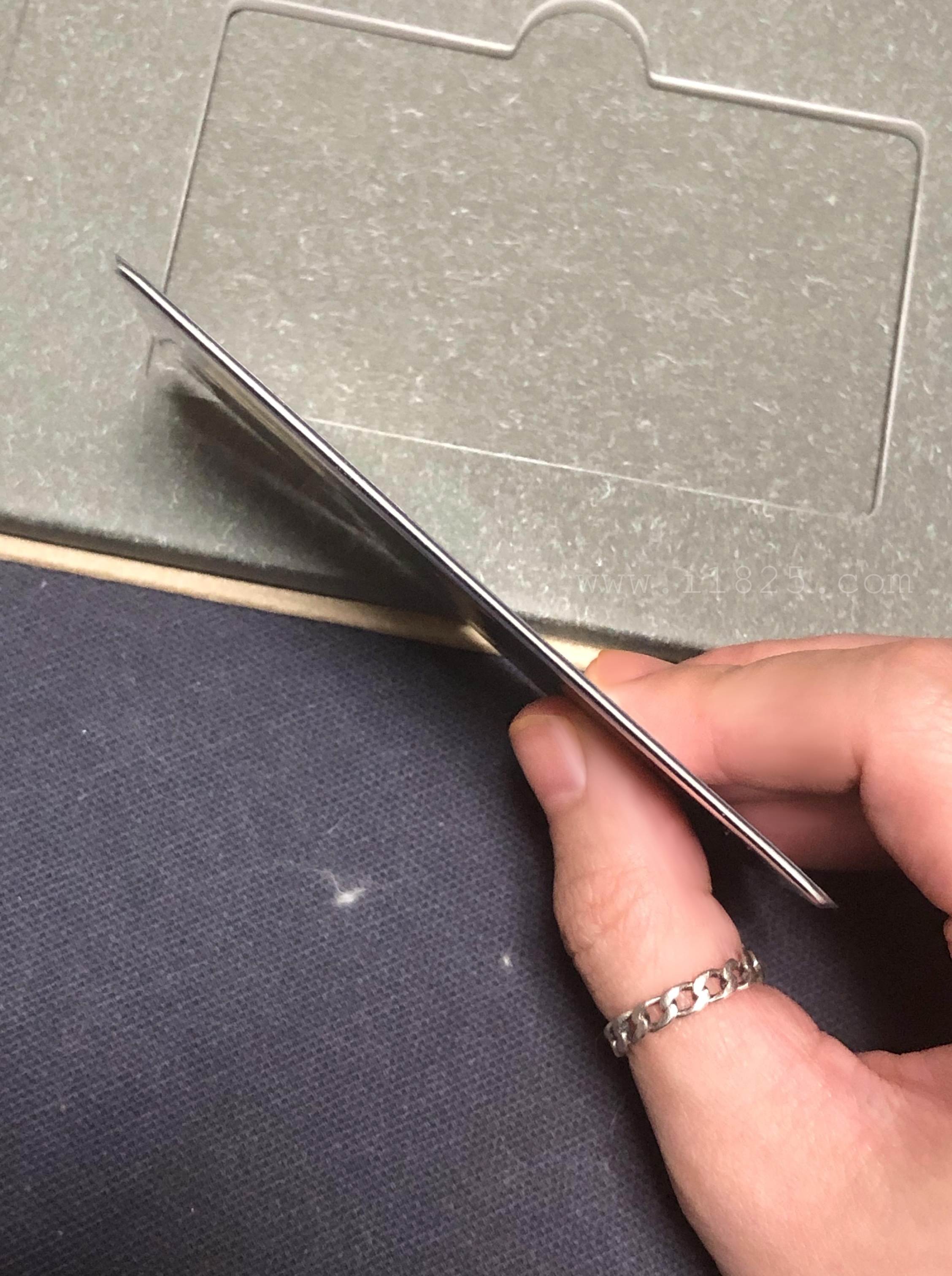 손으로 만져보면 미묘하게 순금 골드바의 1mm 두께가 카드케이스를 튀어나오는 느낌이 들어요. 카드와 두께를 비교해보면 똑같다고 볼 수 있습니다.