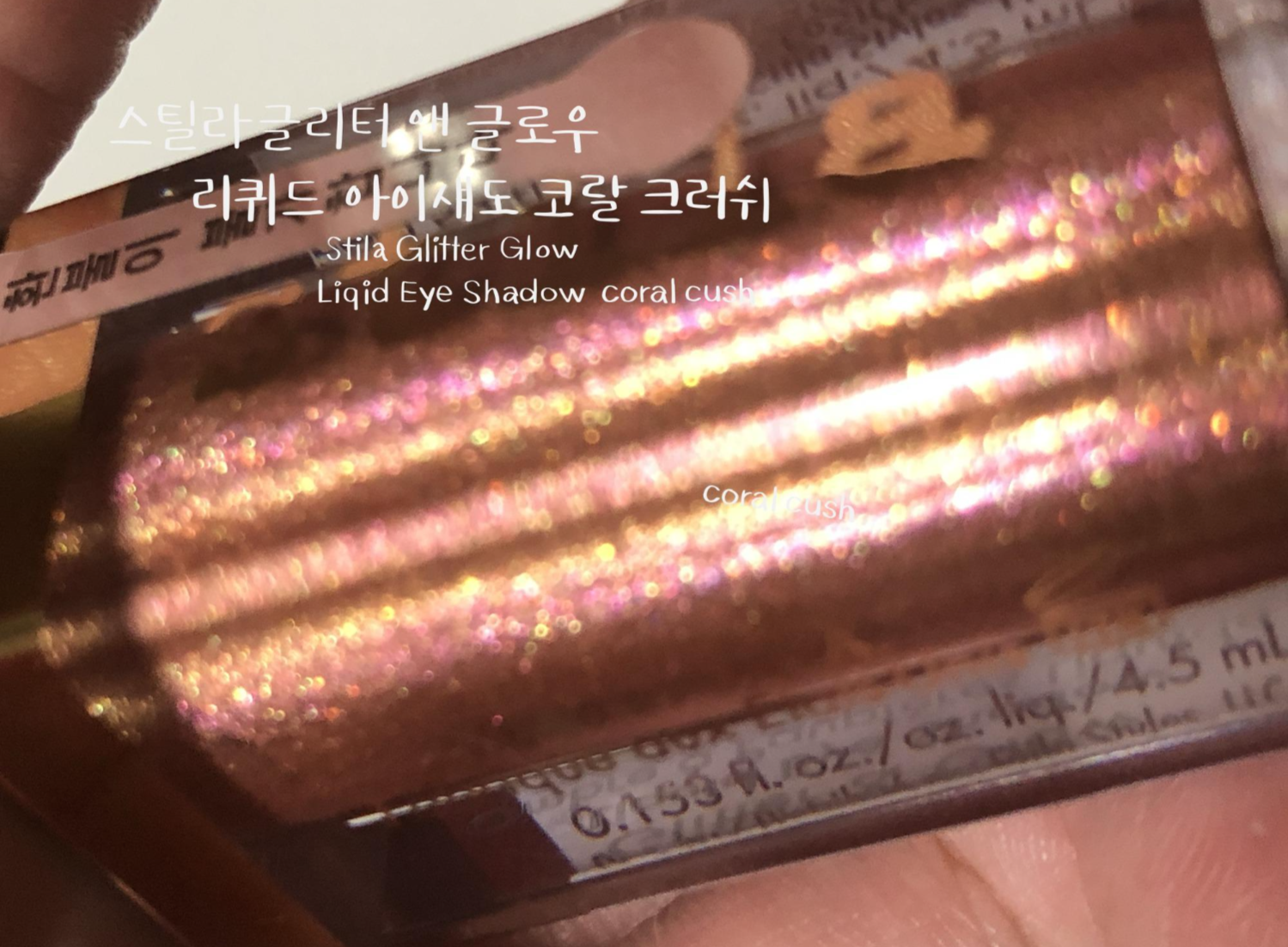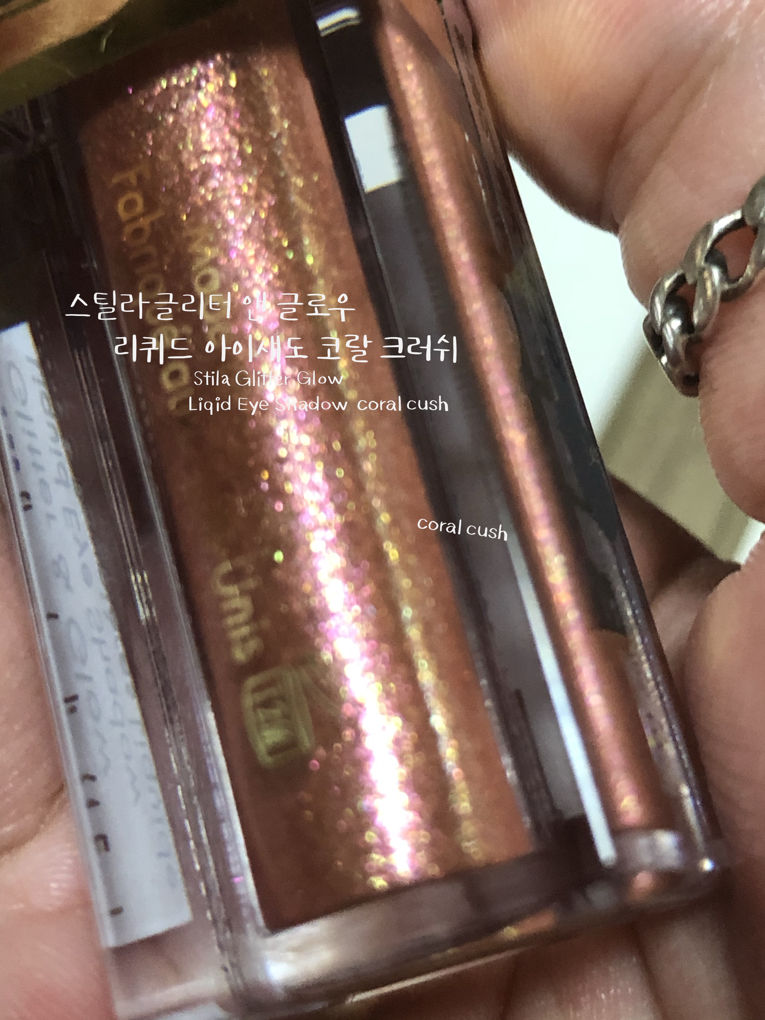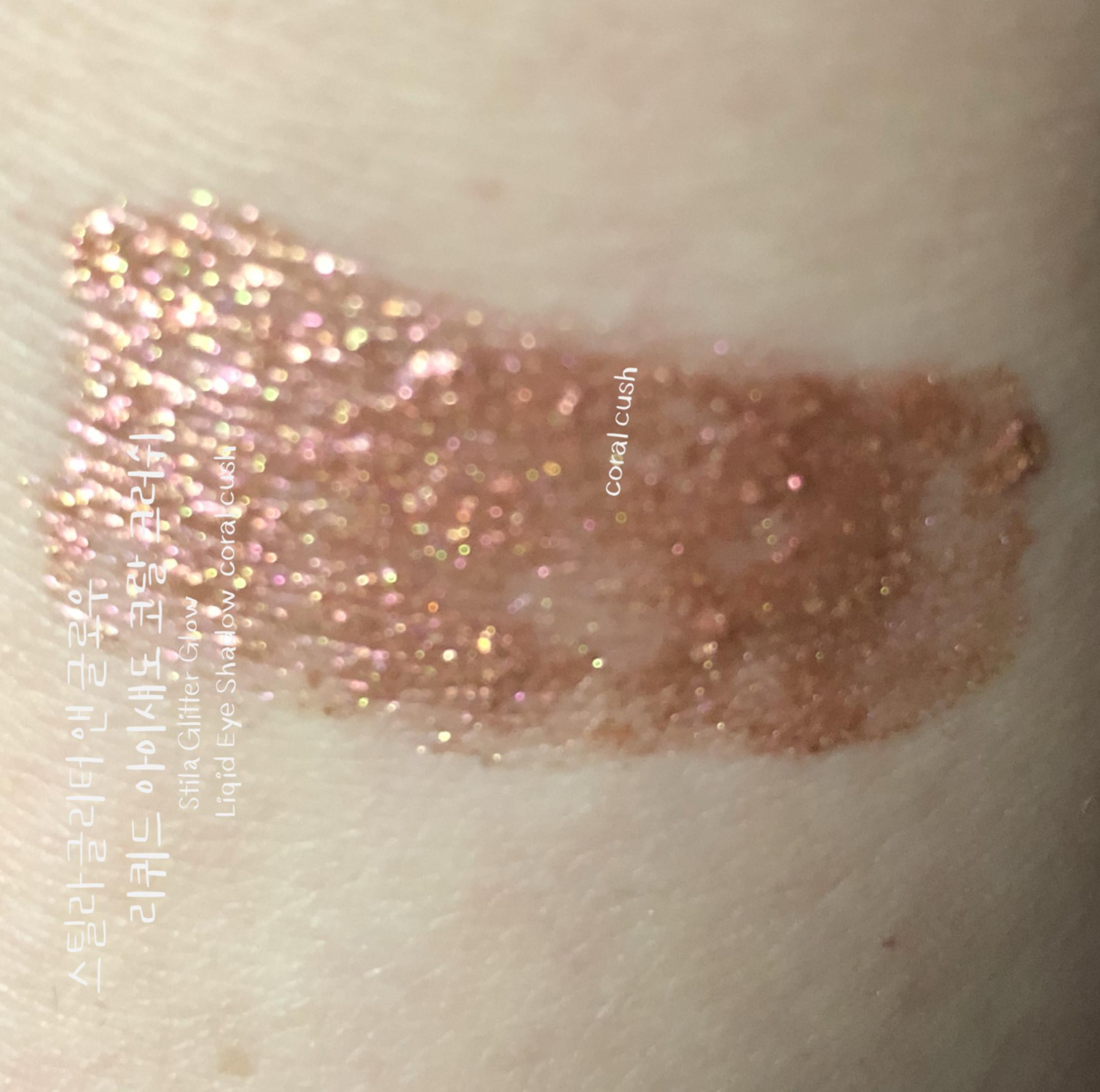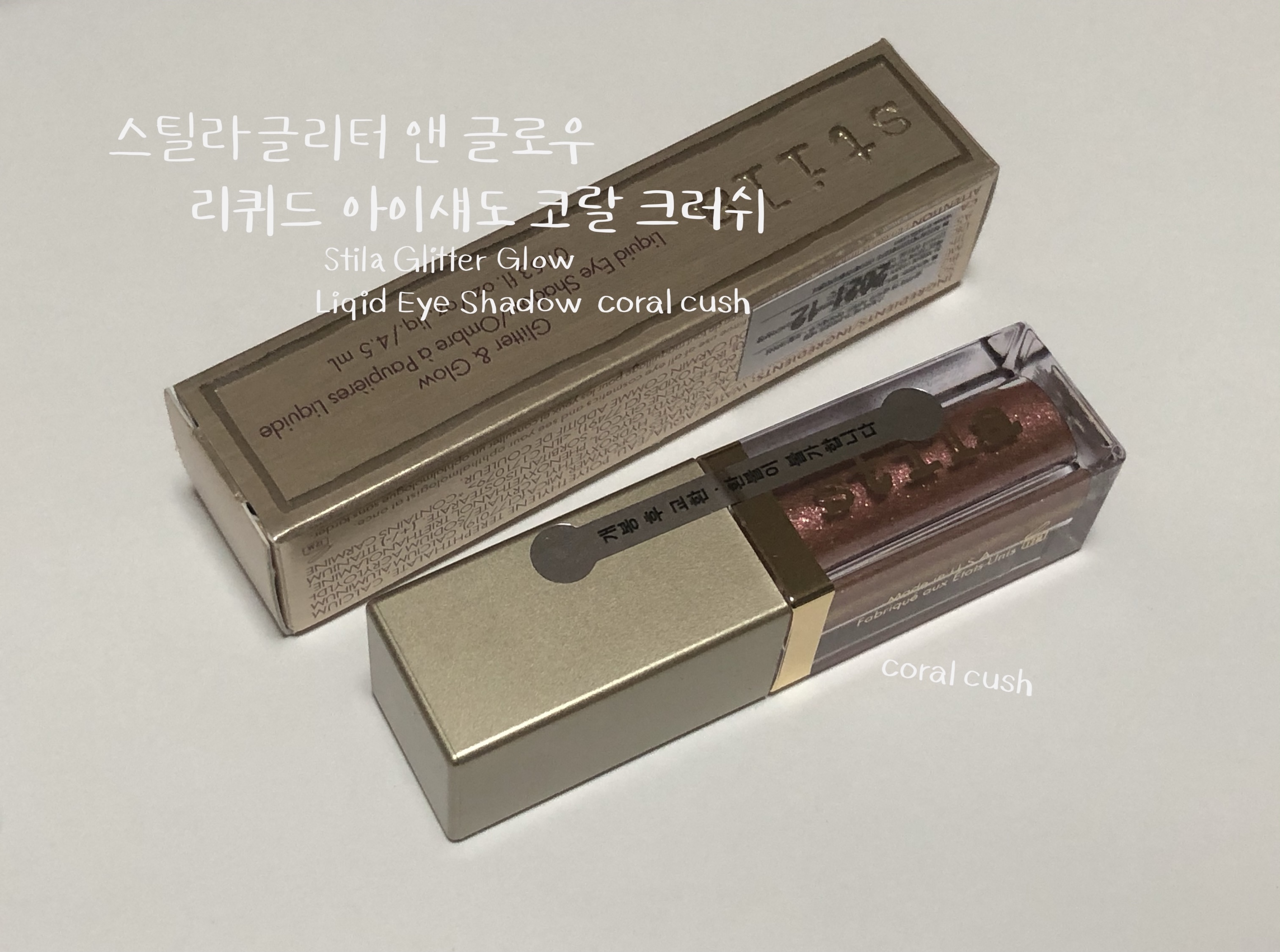 스틸라 글리터 코랄크러쉬는 발랄한 코랄 베이스에 핑크 골드 펄이 화려한 웜톤 리퀴드 섀도우입니다. 수분 베이스에 존재감 확실한 펄들이 들어있어 밀착력이 우수합니다. 리퀴드 섀도우의 특징인 워터프루프라서 수분에 절대적으로 강한 섀도우입니다. 비 오는 날에 테스트해보고 싶어지네요.