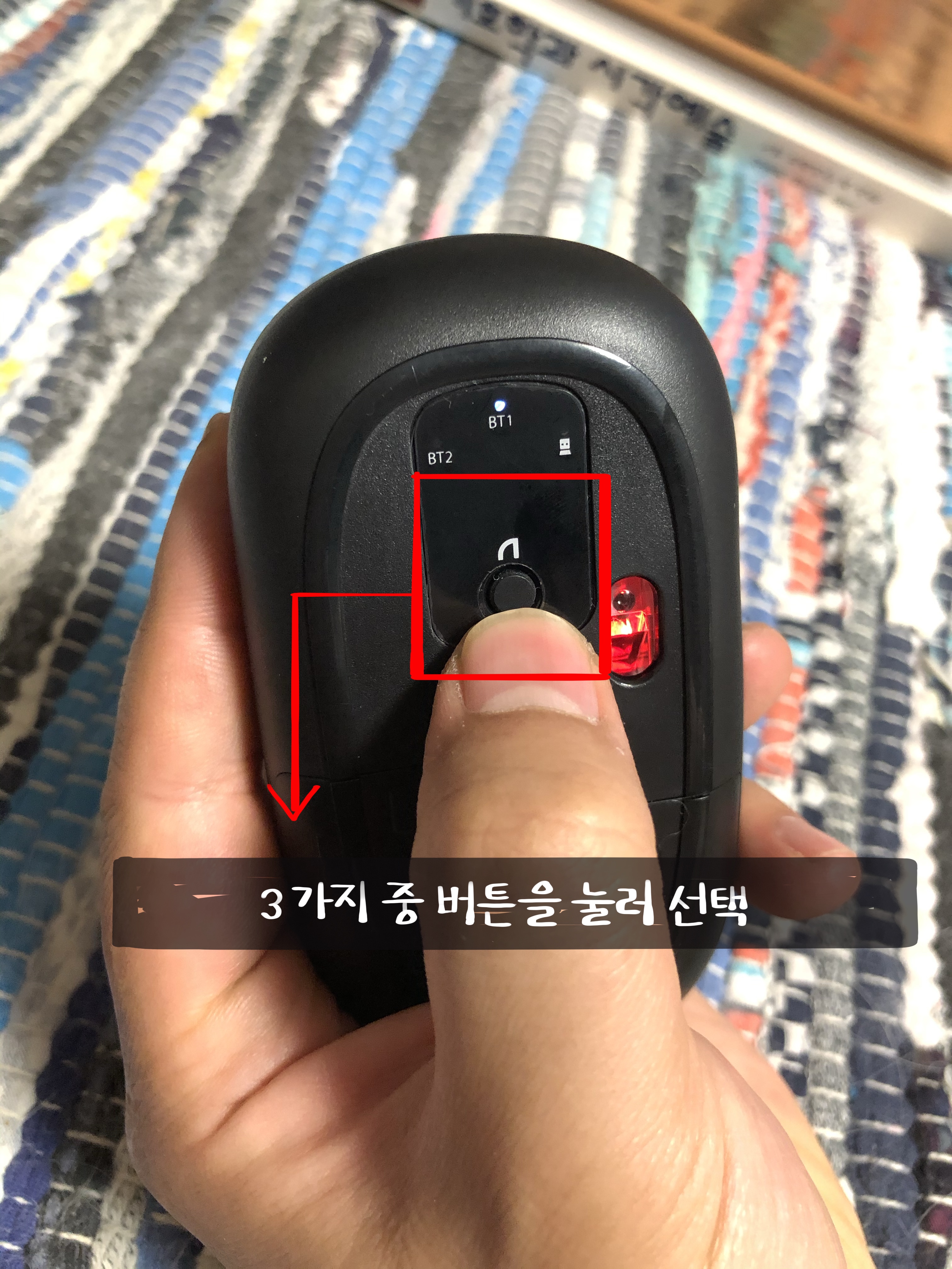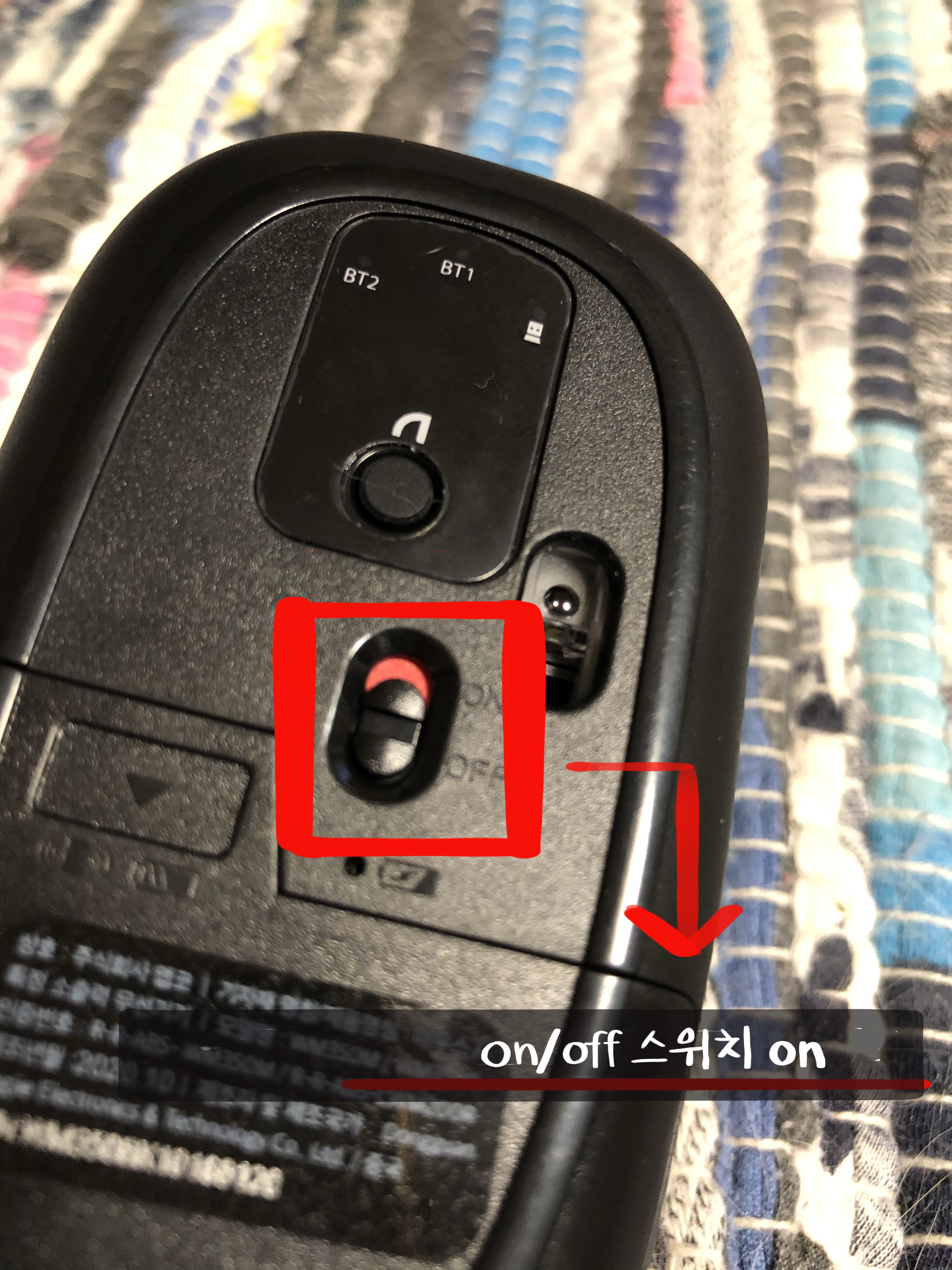 5. 마우스 뒷면에 on/off에서 버튼을 위로 올려 스위치 on 으로 켭니다.