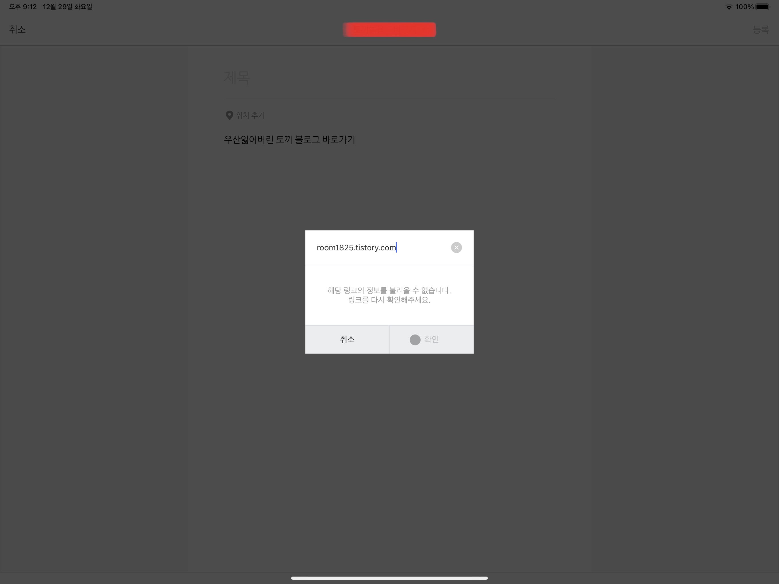 7. 창에 "url"을 적은 후 "확인"을 누르면 완성입니다.