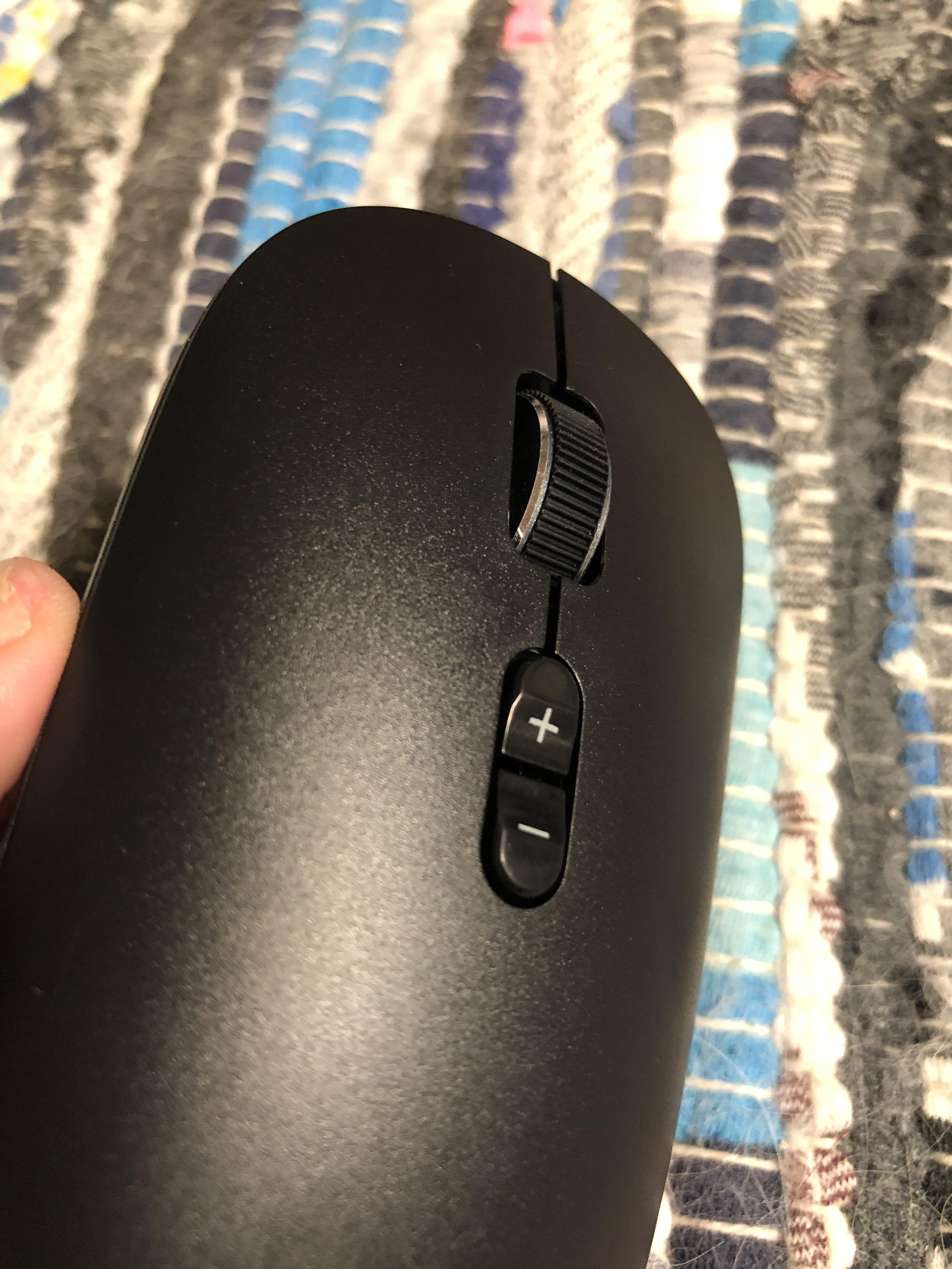 >> 마우스 중앙 조금 위에 휠이 위치하고, 휠 바로 밑에 감도조절버튼이 있습니다.