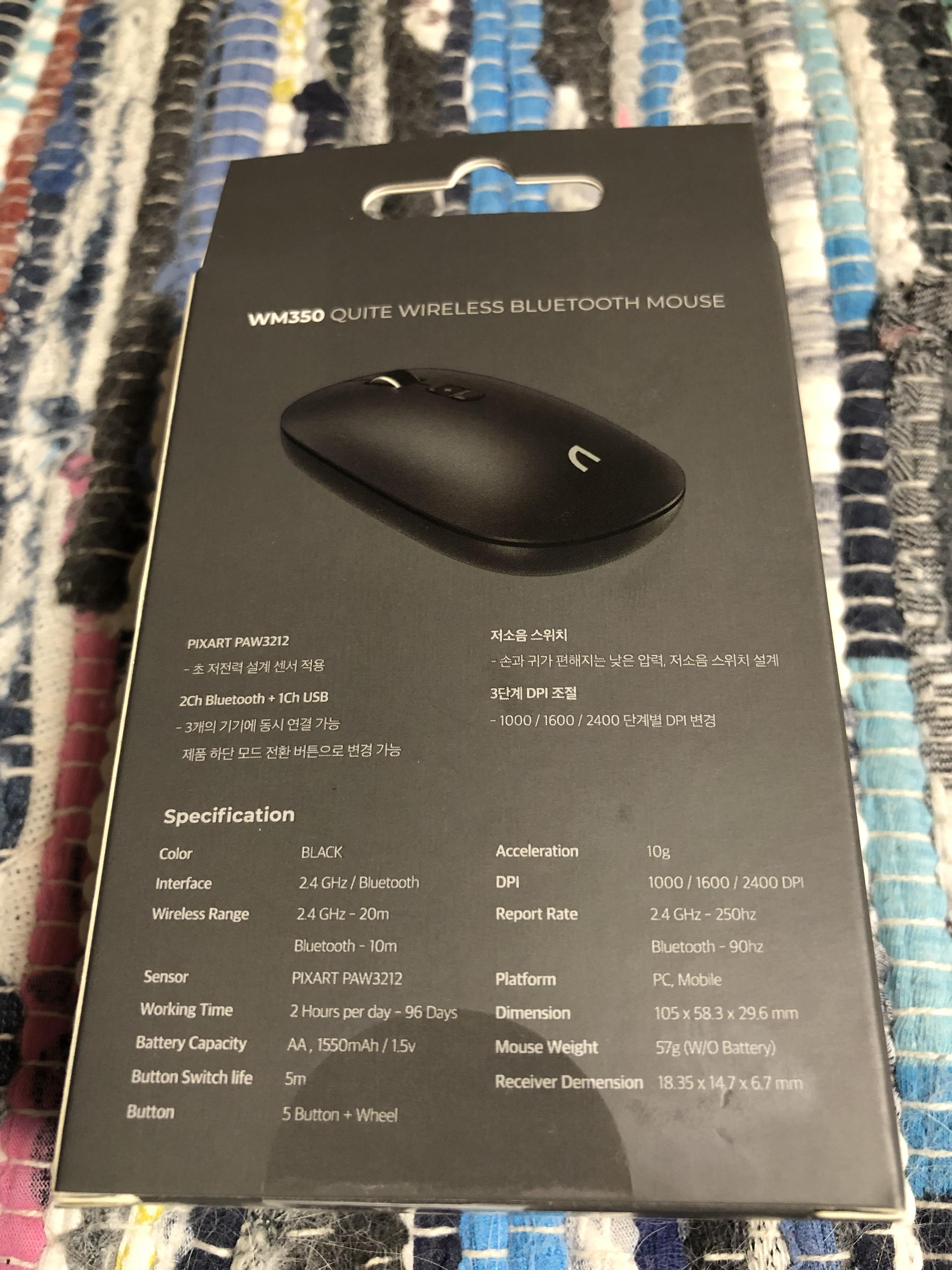 | interface | 2.4 GHz / Bluetooth | DPI | 1000 / 1600 / 2400 DPI |